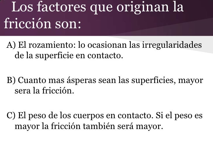 Los factores que originan la fricción son: